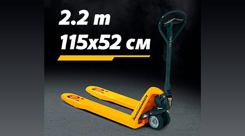 Особая маркировка на вилах обеспечивает точное позиционирование паллет, а хромированные колесные втулки и шарниры гарантируют бесшумное движение без потребности в регулярном техническом обслуживании.